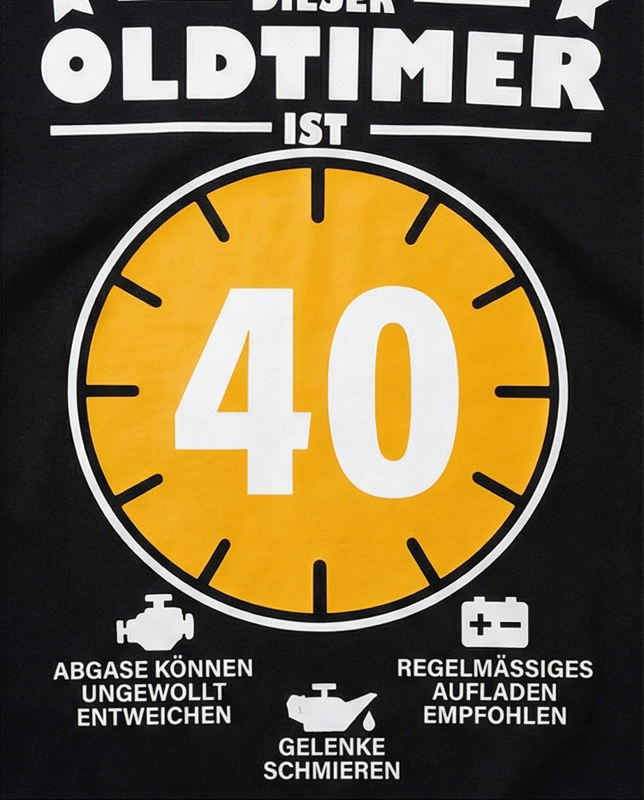 Endlich da! 🚗 Unser neues 'Oldtimer'-Shirt ist perfekt für alle Klassiker. Personalisiere die Mitte mit deinem Alter, z.B. 40!